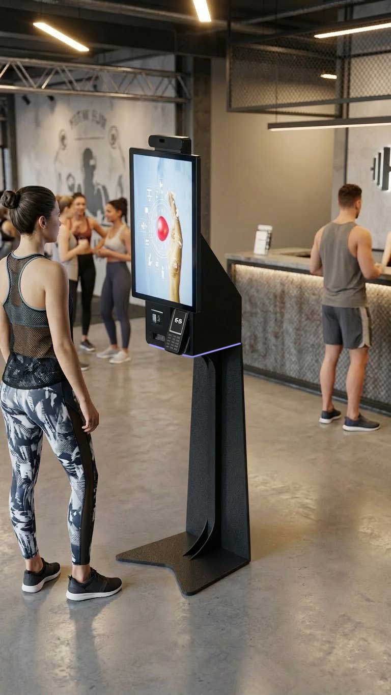 kiosco autogestión, gimnasios, alta clientes, restaurantes.